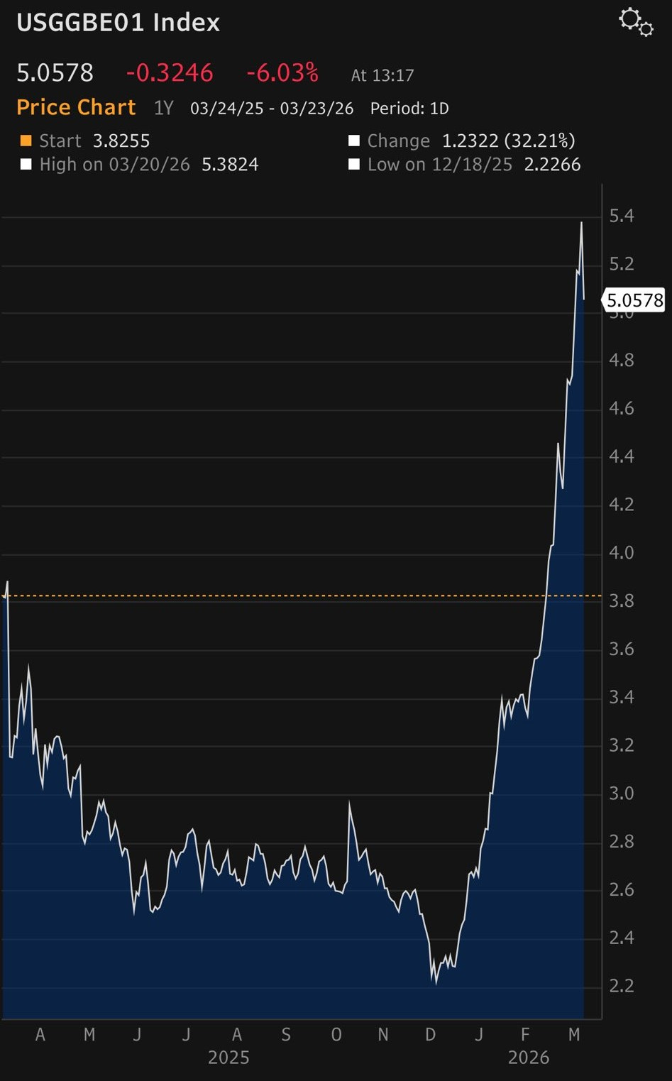 Indeed, the 1-year inflation rate suggested by market pricing of linked Treasuries has shot up to over 5%.