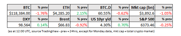 And, along with Q2 results, earlier today stablecoin issuer Circle unveiled Arc, a layer-1 blockchain expected to launch on testnet later this year. Details are slim, but it looks like Arc will connect clients across Circle’s ecosystem on a platform that can handle stablecoin transfers as well as FX and other market applications.