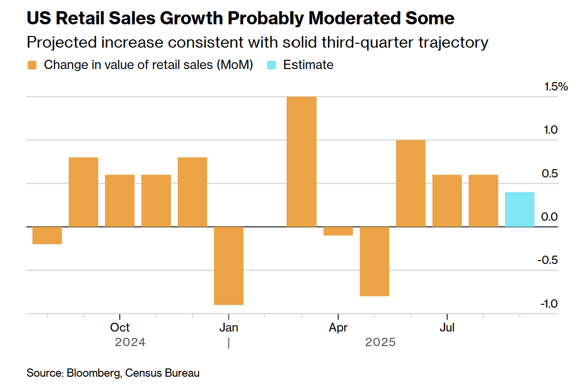 On Tuesday, we get US retail sales for September, with consensus estimates suggesting a slight slowdown to 0.4% growth month-on-month, from August’s 0.6%. This is old data by now, though, so it shouldn’t affect markets much, whatever the result.
