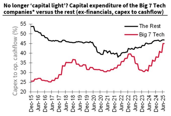 The risk for global investors is huge, even beyond potential drops in the prices of AI-related stocks. Economist Jason Furman estimates that without the contribution from overall investment in IT, US GDP growth in H1 would have been at an 0.1% annualized rate. That does not feel like something most analysts are taking into account.