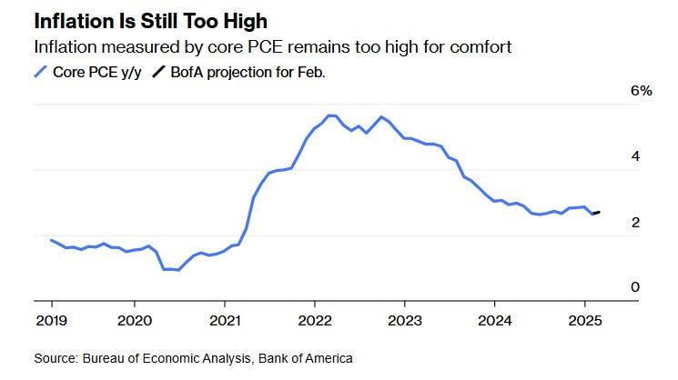 The core PCE index, due next Friday, is now expected to climb by around 0.34% in February, month-on-month, which would raise the year-on-year measure to 2.75%, from 2.65% in January. Not what the Fed wants to see.
