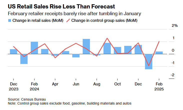 Yesterday’s US retail sales figures for February disappointed with a 0.2% month-on-month increase, rather than the expected 0.6% climb. That said, it was an improvement on January’s startling 1.6% drop, although it adds to the narrative of increasingly cautious consumption.