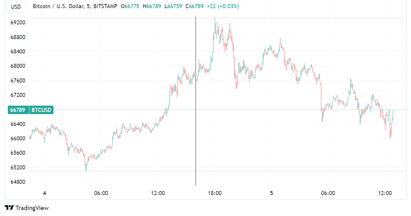 Yesterday, a day in which both narratives (risk-on and risk-off) were impacting markets, BTC held pretty steady.
