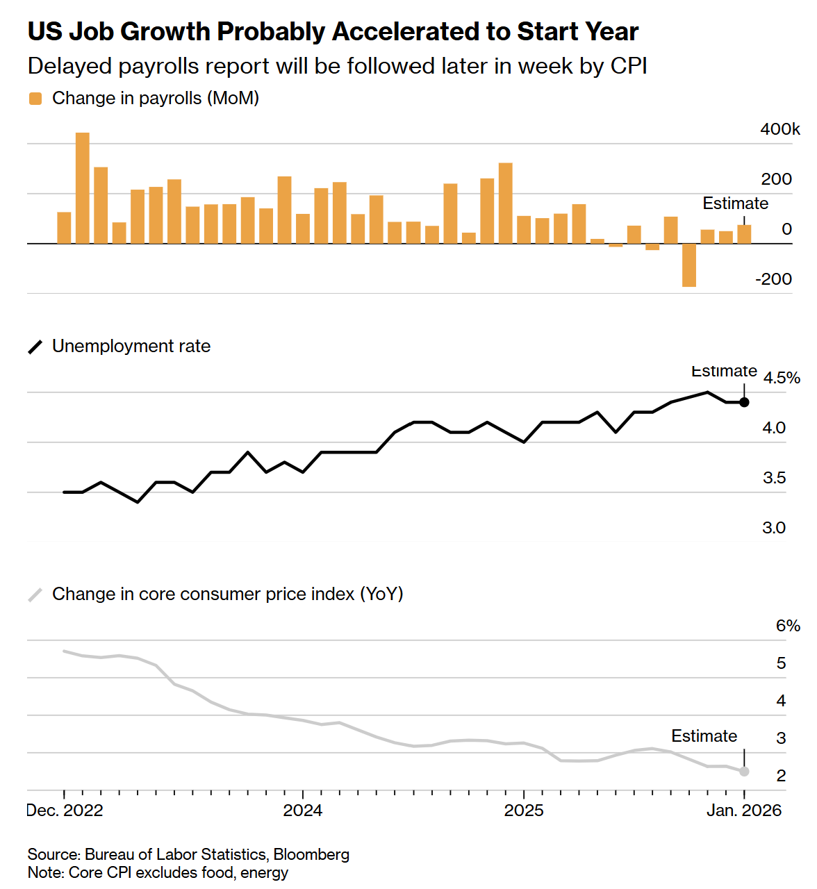 On Wednesday, we get the delayed official US jobs report for January. This one goes beyond delivering payrolls growth, the unemployment rate, and breakdowns of each. It also publishes the annual revision to the jobs count – brace yourself, as we should see a notable downward revision to the growth seen through March 2025. True, it’s now history, but it could change confidence in the current trajectory of economic growth. The consensus estimate for January’s payrolls increase is a not insignificant 69,000, which would be the best in four months. The unemployment rate is forecast to hold steady at 4.4%.