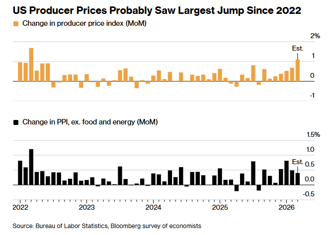 On Wednesday, it’s the turn of March US import and export price indices, with both expected to show a sharp acceleration on a year-on-year basis.