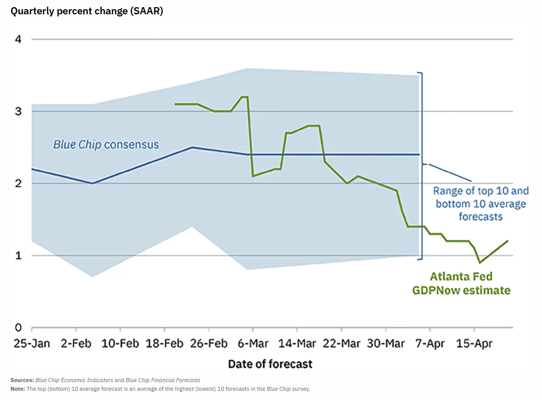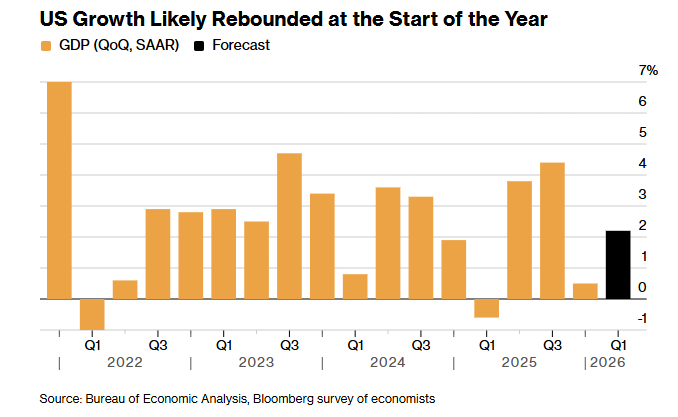 It’s worth pointing out that the Atlanta Fed’s GDPNow model points to Q1 GDP growth of only 1.2% - still above Q4 2025’s growth of 0.5%, but lower than economists predict.