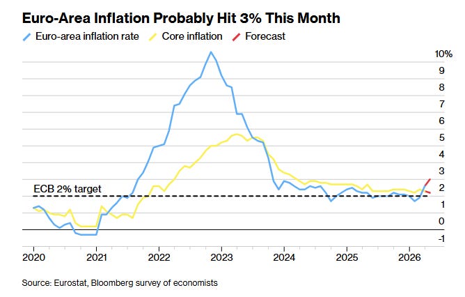 And between Wednesday and Thursday, we get a glimpse of the economic impact so far of the Iran War via the preliminary (“flash”) data for inflation and GDP from key European economies and the Eurozone as a whole. It’s not looking great.