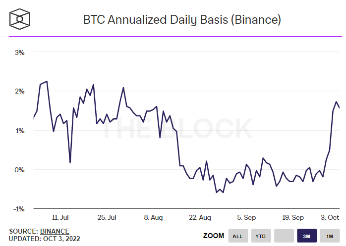 Speaking of futures, the annualized daily basis for BTC futures on Binance jumped last week after spending much of the past two months in negative territory, pointing to a notable positive shift in sentiment.