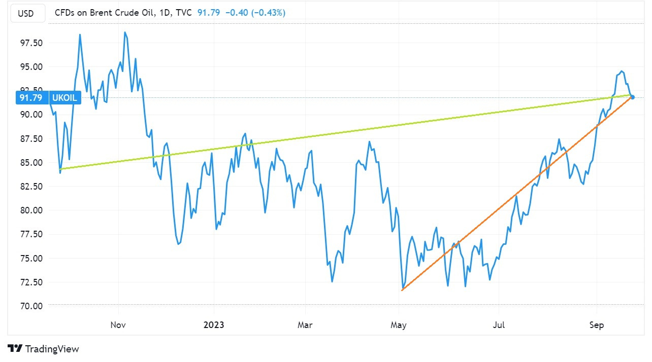 Meanwhile, the steady climb of the US dollar and the almost 30% climb in the Brent Crude benchmark oil price since its local low in early May should be enough to bring down some earnings forecasts, potentially also impacting valuations. These are likely to be further downgraded as analysts factor in a higher discount rate, given the increasing probability that rates will remain higher for longer.