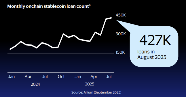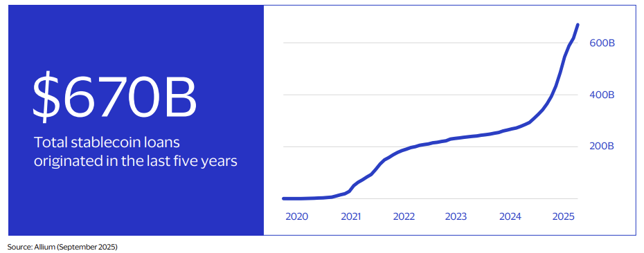 The lack of attention may be about to change – Allium has published a report together with Visa on stablecoins and lending that highlights some detailed numbers as well as the advantages and potential growth.