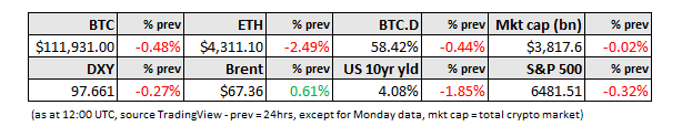 There are three big deals for the macro and crypto outlooks this week: the US inflation data out on Thursday, and the BLS payrolls revision expected tomorrow – both will weigh heavy on rate cut expectations. And there’s the French vote tonight, more on this below.