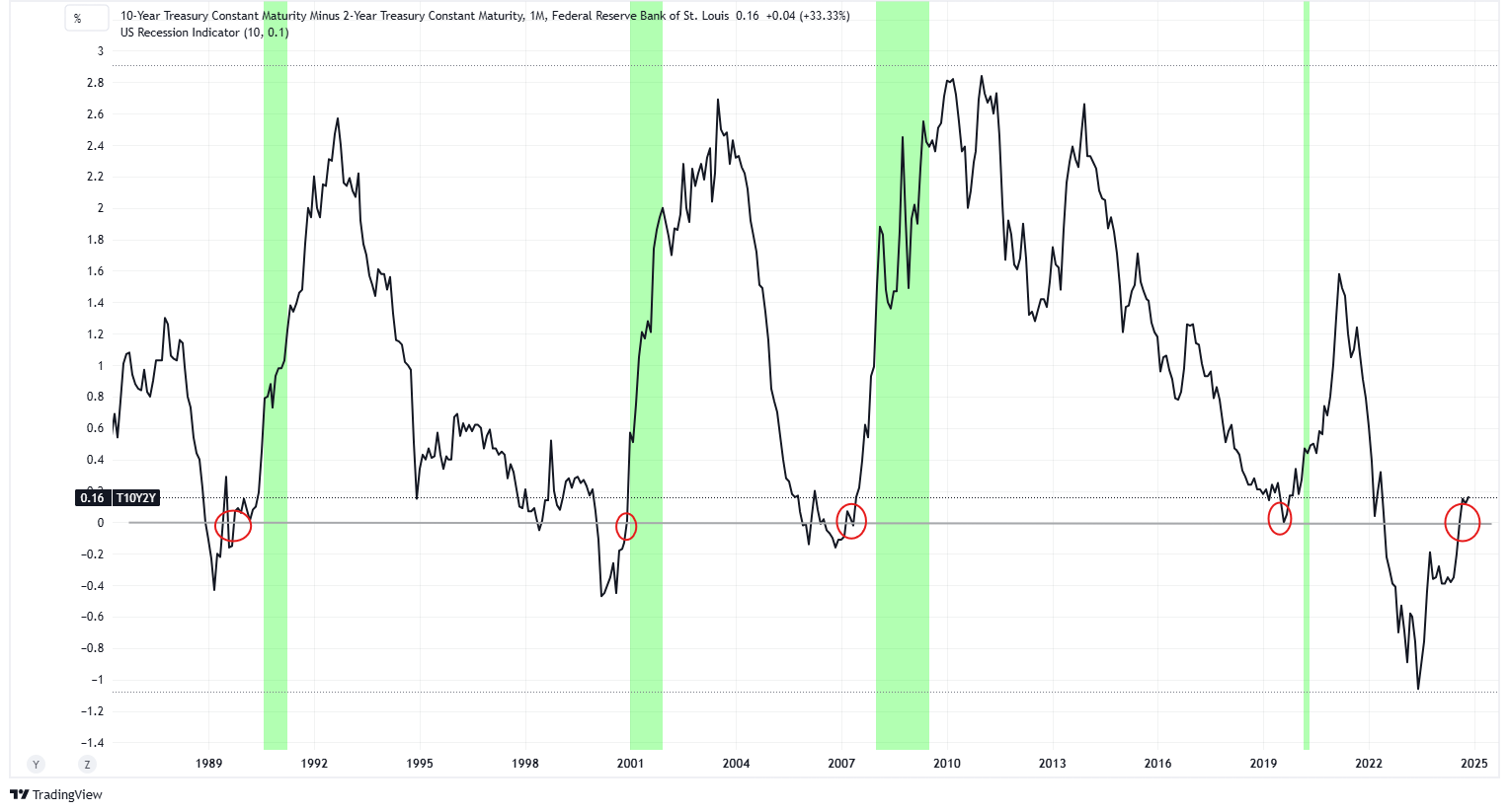 (chart of the 10yr-2yr yield difference via TradingView)