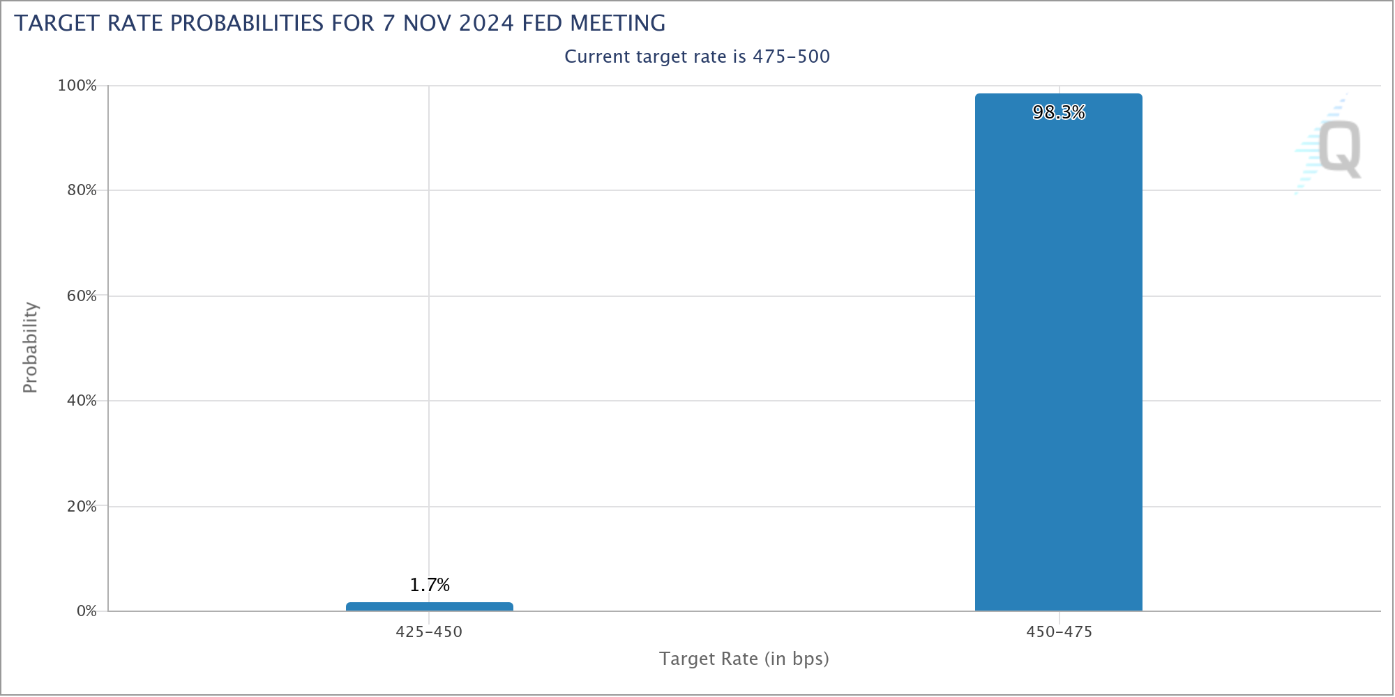 The CME futures market is signalling an almost 100% chance of a 25bp rate cut on Thursday (if you’re wondering why Thursday and not the usual Wednesday statement, it’s been bumped a day because of the election). Another 25bp in December is at a 75% probability.