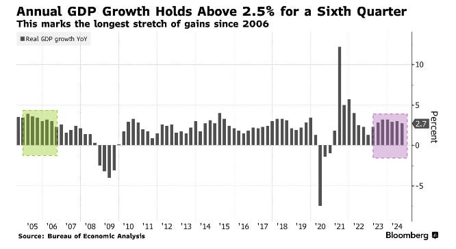 Year-on-year, GDP was up 2.7%, marking the sixth consecutive quarter above 2.5%, the longest such stretch since 2026.