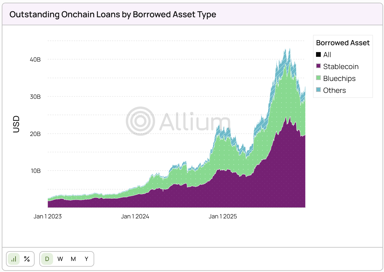 Our latest whitepaper published with Visa, Stablecoins Beyond Payments: The Onchain Lending Opportunity, examines how banks can access emerging credit markets. Looking at the data, outstanding onchain loans reached over $40Bn this year, with stablecoins making up more than half of borrowed assets.