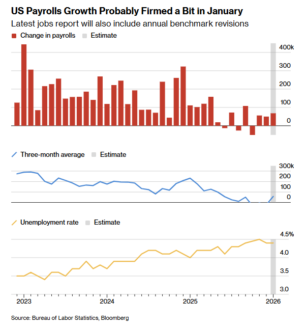 On Friday, we get the much-anticipated US jobs data (a government shutdown may impact this). Consensus forecasts point to a payrolls increase of 68,000 for January, which would be the most in four months. The unemployment rate is expected to remain steady at 4.4%.
