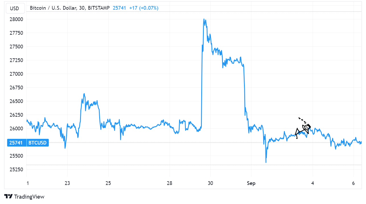 After a brief flash of excitement after Grayscale won its case against the SEC, BTC ennui seems to be back, and we can largely blame the oil price.