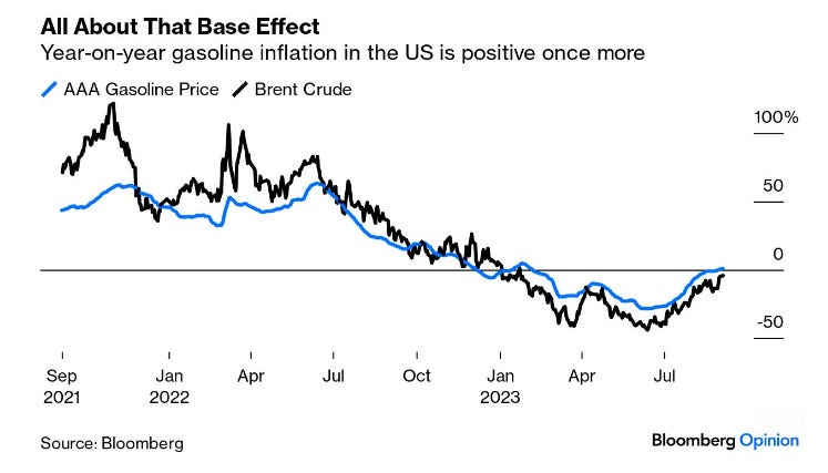 Gasoline prices are now higher than they were a year ago, for the first time since January when US headline inflation was at 6.4%.