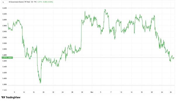 For one, the bond market likes the increased likelihood of substantially lower rates. Treasury prices rose, and the benchmark yield on the US 2-year treasury almost touched 3.45% for the first time since late October.