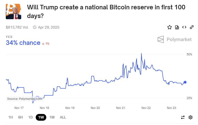 Trump is pro-crypto, sure, but there’s not much evidence he fully understands the value of Bitcoin (remember how he said he’d make sure all BTC was “minted” in the US?). And I can’t see him getting excited about swapping US dollars or gold for an asset whose price appreciation would benefit holders in “unfriendly” nations, or those who don’t have faith in the dollar, or governments that want to hedge against dollar weaponization, or even US-based investors who want to hedge against dollar debasement. BTC, let’s face it, is not an “America first” asset. Good for America, yes – but a hard sell.