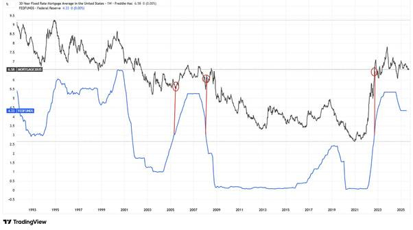 What’s more, the last few times the fed funds rate was around 3% (the median Federal Reserve estimate of the “neutral” rate that US Treasury Secretary Scott Bessent insists the Fed should target), mortgage rates were not much lower.