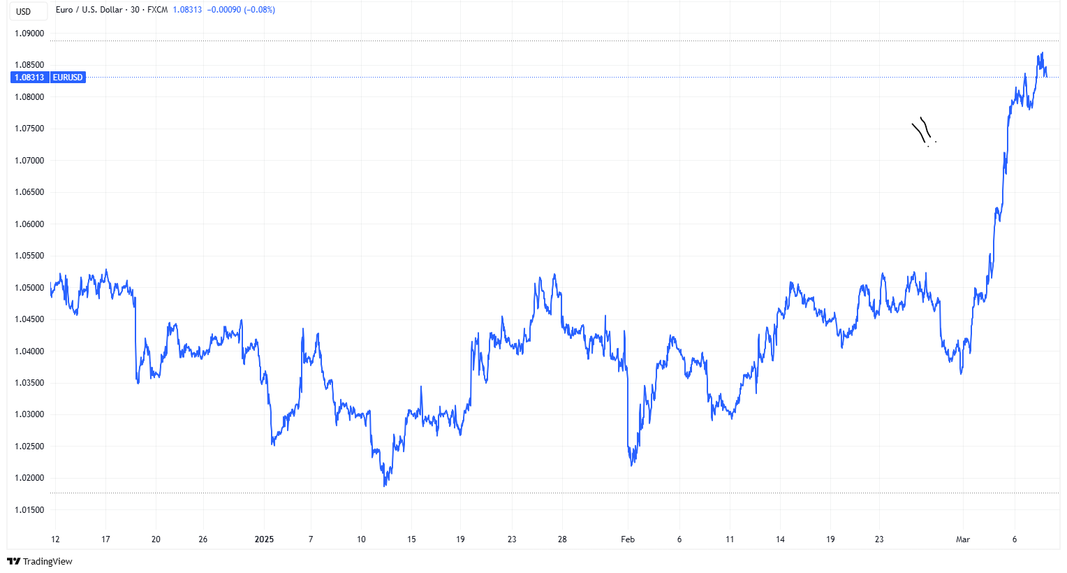 Meanwhile, EU leaders gathered on Thursday in an emergency summit to discuss a coordinated approach to defence including joint borrowing of up to €150 billion (~$160 billion) and fiscal flexibility for individual nations to potentially add another €650 billion to that funding. All 27 member states agreed to examine the proposals, and there was a show of fighting spirit in talk about winning the “arms race”. Ambitious, vague and controversial, but an astonishing pivot nevertheless.