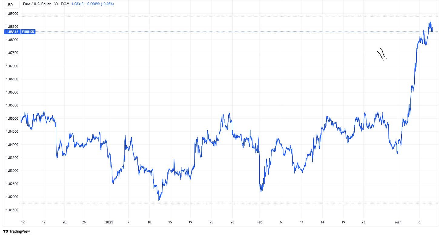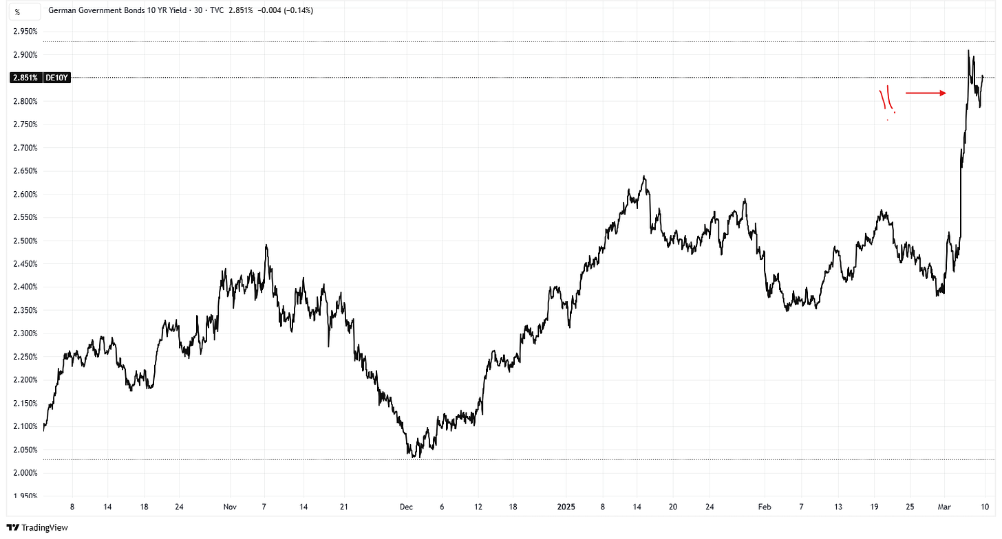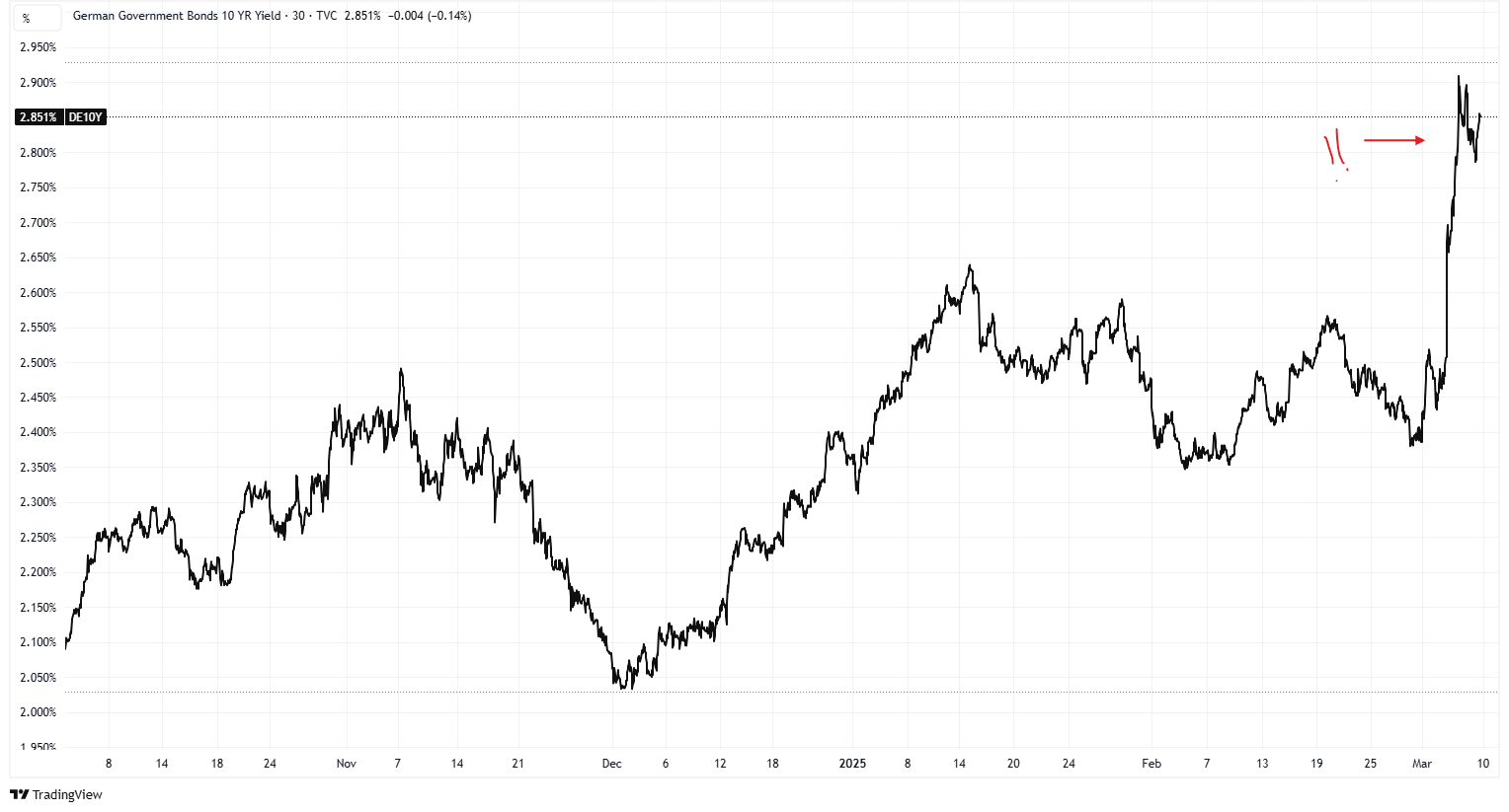 It’s impossible to overstate the significance of this move, which is all the more astonishing given that Merz campaigned on opposition to fiscal expansion. The news is a material turning point for the country which has been facing economic stagnation and domestic unrest with no clear solution in sight, given the political paralysis resulting from deepening polarization.