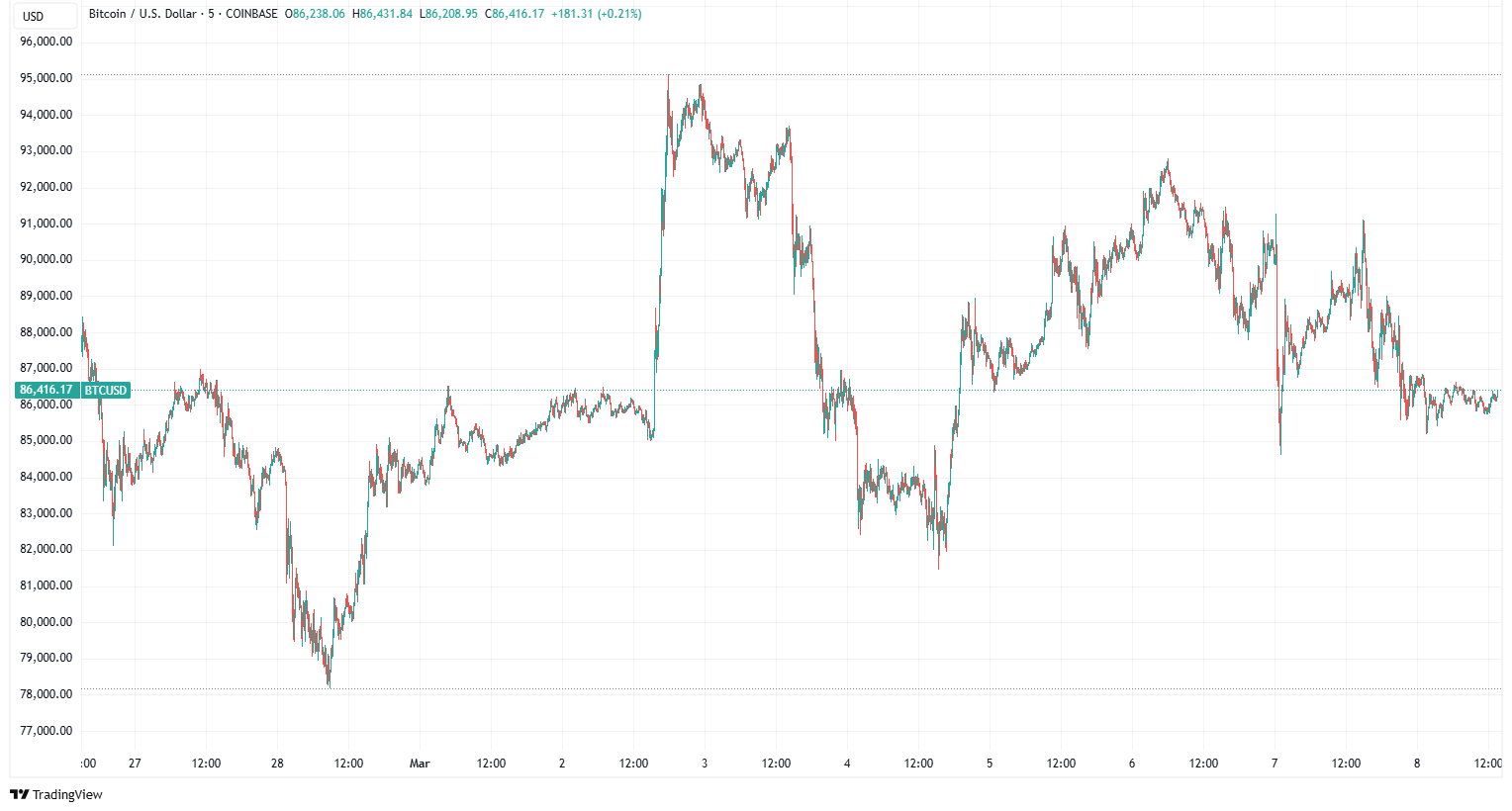 BTC is holding up relatively well, perhaps in part because of the dollar weakness, but also due to confirmation of an official Strategic Bitcoin Reserve – this was disappointing for many, but overall positive in that it enshrines its store of value characteristics without requiring the additional commitment of US public funds. That it’s not doing better underscores how macro concerns still weigh heavy on crypto assets.