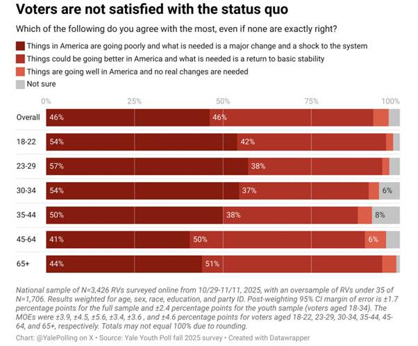 More than half of those surveyed think that things are bad and “what is needed is a major change and a shock to the system”.