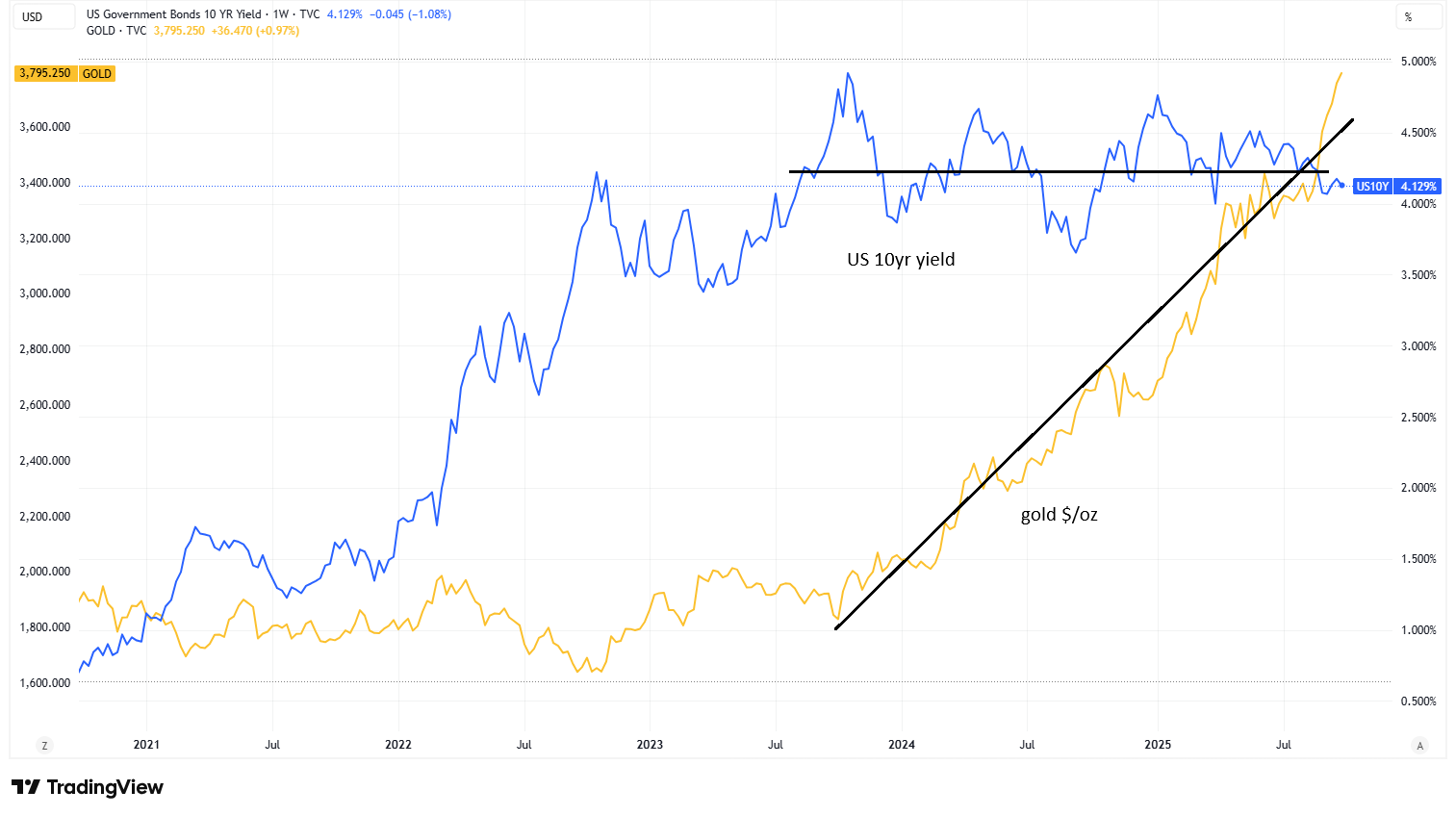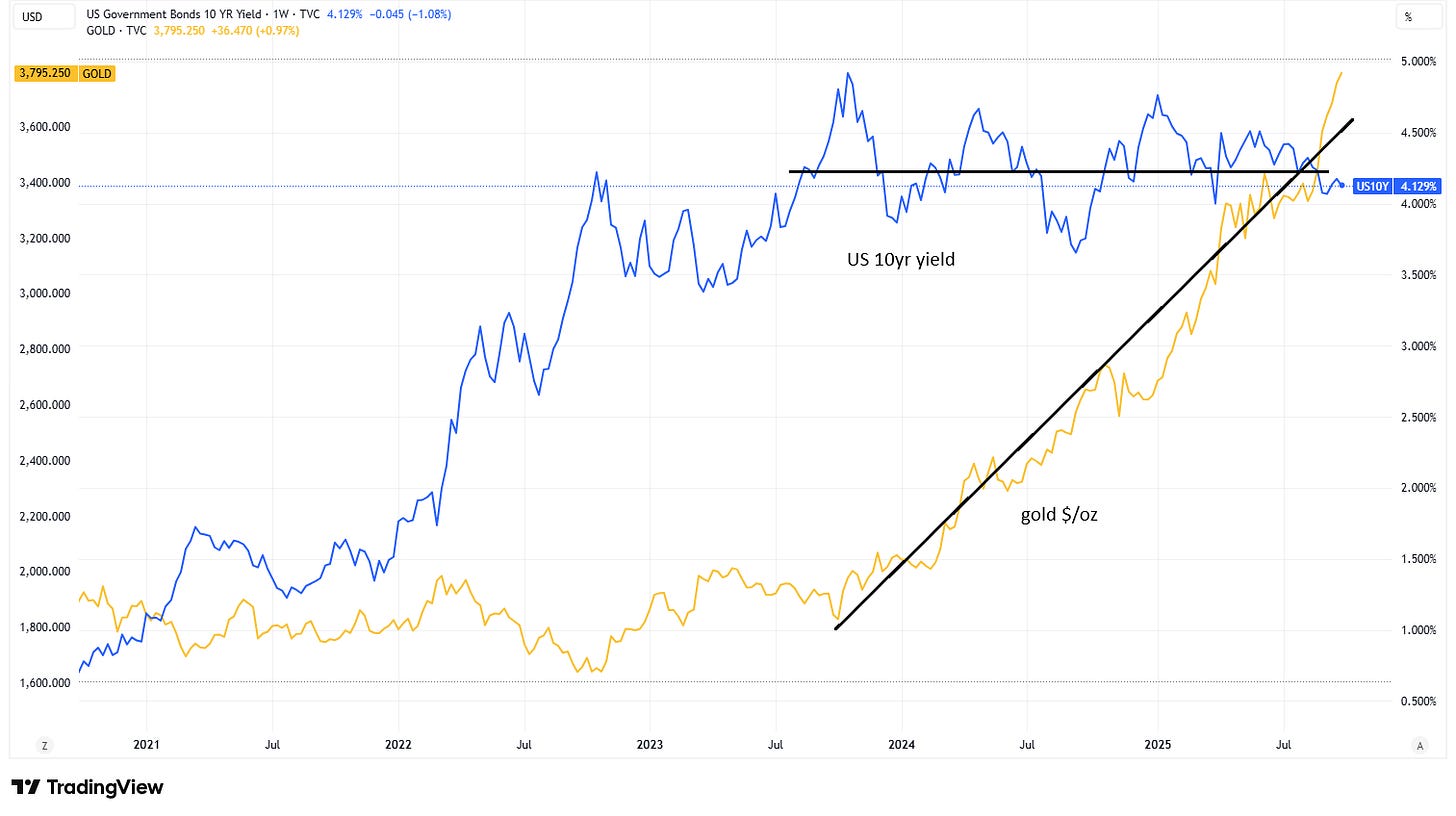 Regular readers will know that I often write about geopolitical developments here, because they are an intensifying tailwind for BTC. As I wrote yesterday, we are seeing signs that the market is starting to take on board the building uncertainty – just look at the gold price and stubbornly high long-term bond yields.